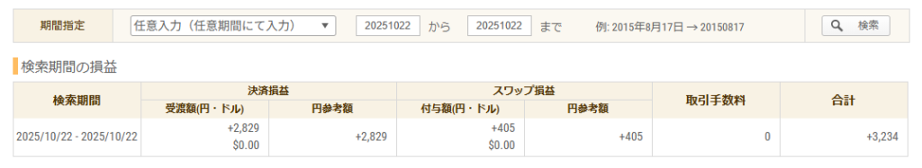 トレード収支は控えめですが、10月21日の+3,234円に続いてプラスで終えることができました。